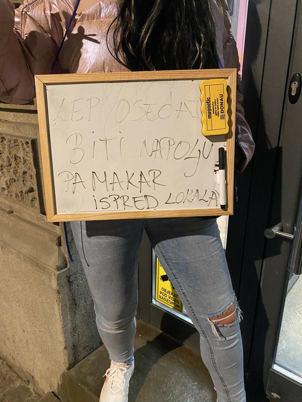 Naime, ona je stajla ispred Bara sa tablom u rukama, ali nije progovarala ni reč.
