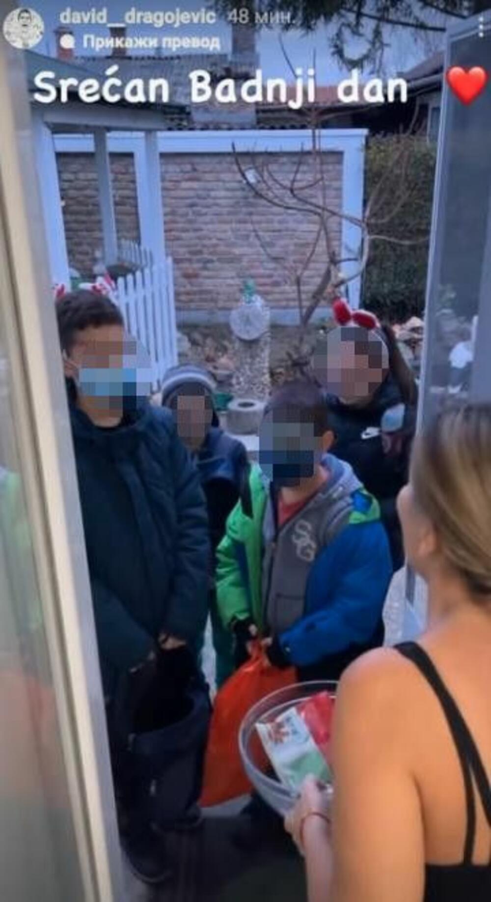 Kako se vidi, ona na Badnji dan deli poklone deci iz komšiluka, a David je sve to snimio i postavio na Instagram uz reči:
