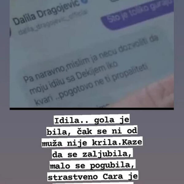 "Pa, naravno, mislim, ja neću dozvoliti da moju idilu sa Dekijem iko kvari... Pogotovo ne ti propaliteti", glasi sadržaj poruke koju je Osman ispratio rečima: "Idila... Čak se ni od muža nije krila. Kaže da se zaljubila, malo se pogubila, strastveno Cara je ljubila. Idila sa Dejanom je prošla, nova ljubav u njen krevet preko noći je došla".