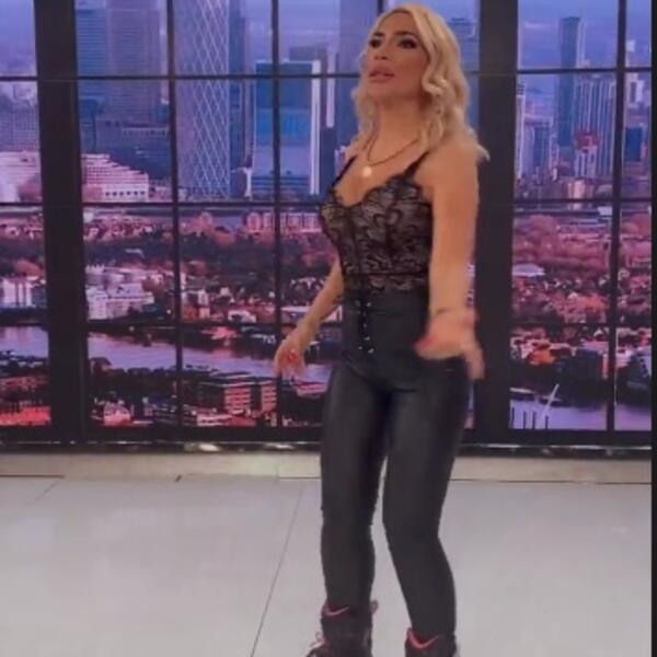 Ona je sedela na podu studija dok se preobuvala, a tom prilikom skinula je i jaknu, pa je ostala u majici u kojoj je njen dekolte došao do izražaja.