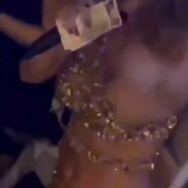 Na Instagramu je osvanuo snimak pevačice s jednog nastupa na kojem vidimo da su joj oko mikrofona obmotane novčanice, te da gosti bacaju pare na nju, ali i da su joj opet ispale grudi.