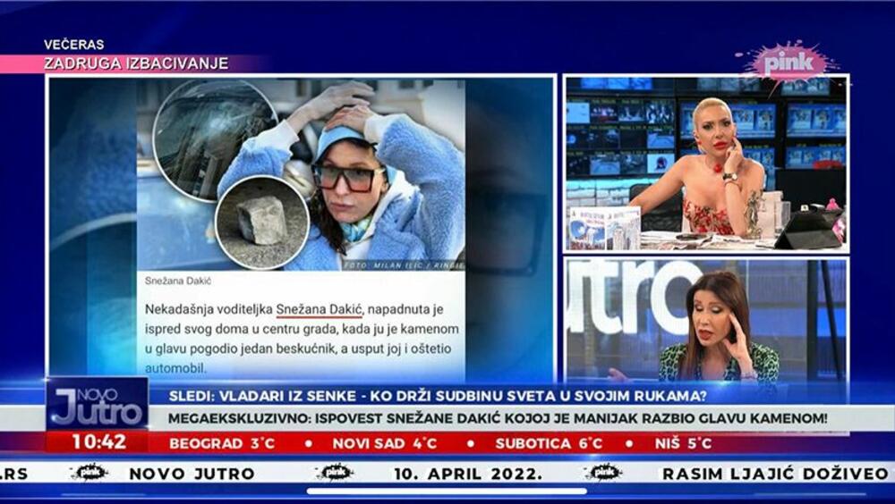 Voditeljka Snežana Dakić gostovala je u emisiji kod Jovane Jeremić gde je govorila o napadu koji je doživela od strane nepoznatog muškarca pre nekoliko dana.