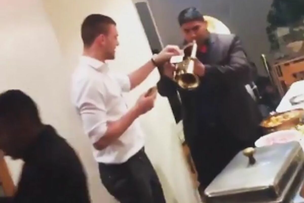 On nije vrata od svog doma otvorio samo prijateljima, već i trubačima, koji su došli da uveličijau veselje u vili.