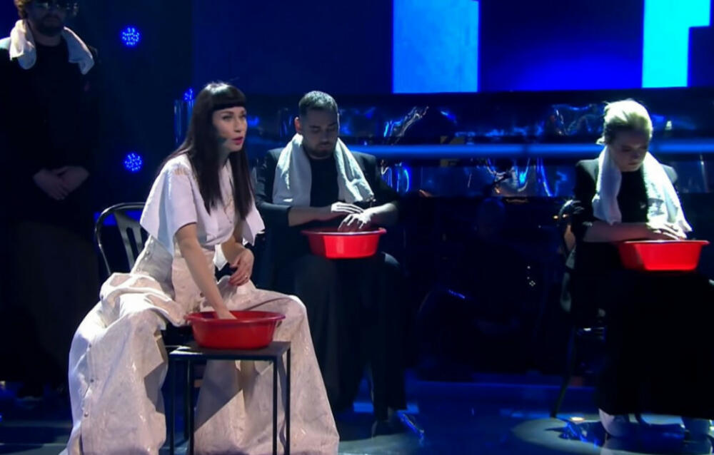 "Kao i na prethodnim nastupima, srpska predstavnica Konstrakta ima scenski nastup koji uključuje kvalitetan nameštaj, intenzivno pranje ruku i lepu koreografiju peškira njenih pet pratećih pevača", stoji u Tviter objavi.