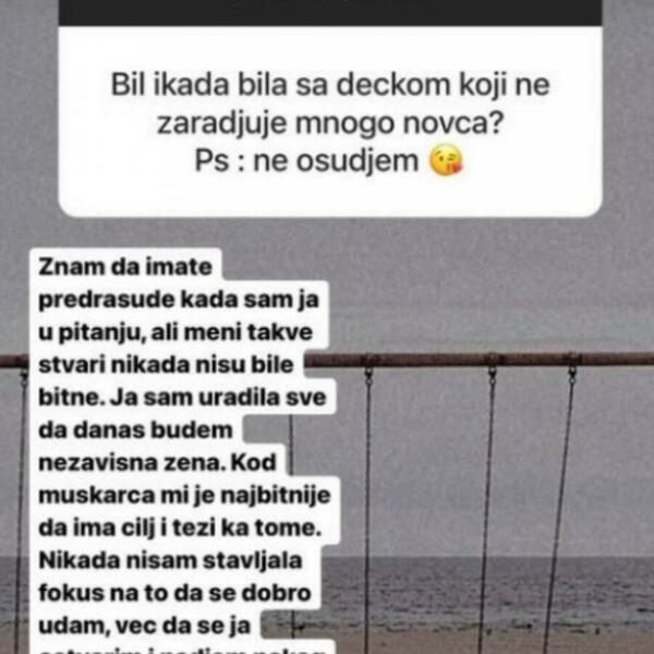 Kako za poznate dame postoje mnoge predrasude kada je reč o novcu i životu na visokoj nozi, jednog od pratilaca zanimalo je da li bi bila sa momkom koji ne zarađuje mnogo ovca.