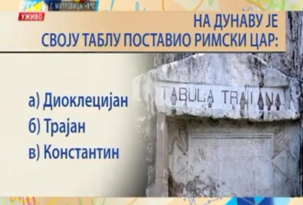Gledalac se uključio u emisiju kako bi odgovorio na pitanje "Koji rimski car je na Dunavu postavio svoju tablu".