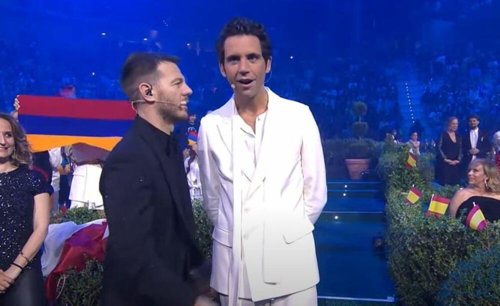 - To ti nije dozvoljeno da kažeš - rekao je voditelj Alesandro Katelan pevaču i najavio nastup predstavnika Nemačke Malika Harisa.