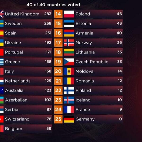 Zemlje koje su bile izuzete iz glasanja su Azerbejdžan, Gruzija, Crna Gora, Poljska, Rumunija i San Marino.
