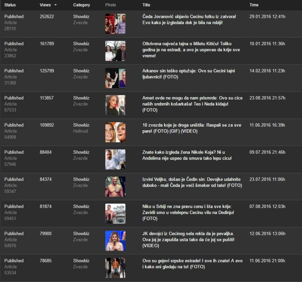 Spremili smo vam spisak naših najčitanijih vesti iz 2016. godine, bar desetak, sa sve dokazima da su najčitaniji, a vi dva puta razmislite sledeći put.
