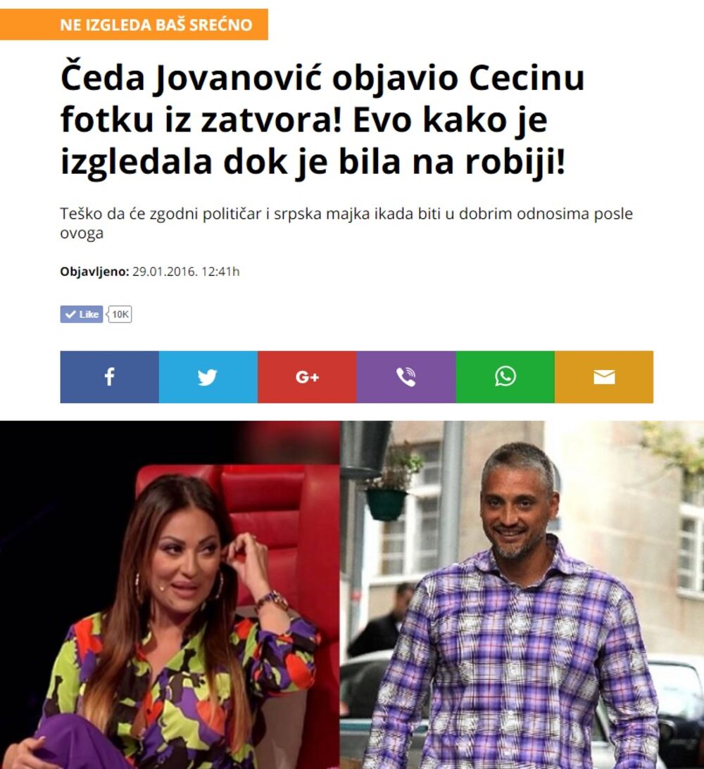 17. Čeda Jovanović objavio Cecinu fotku iz zatvora! Evo kako je izgledala dok je bila na robiji!