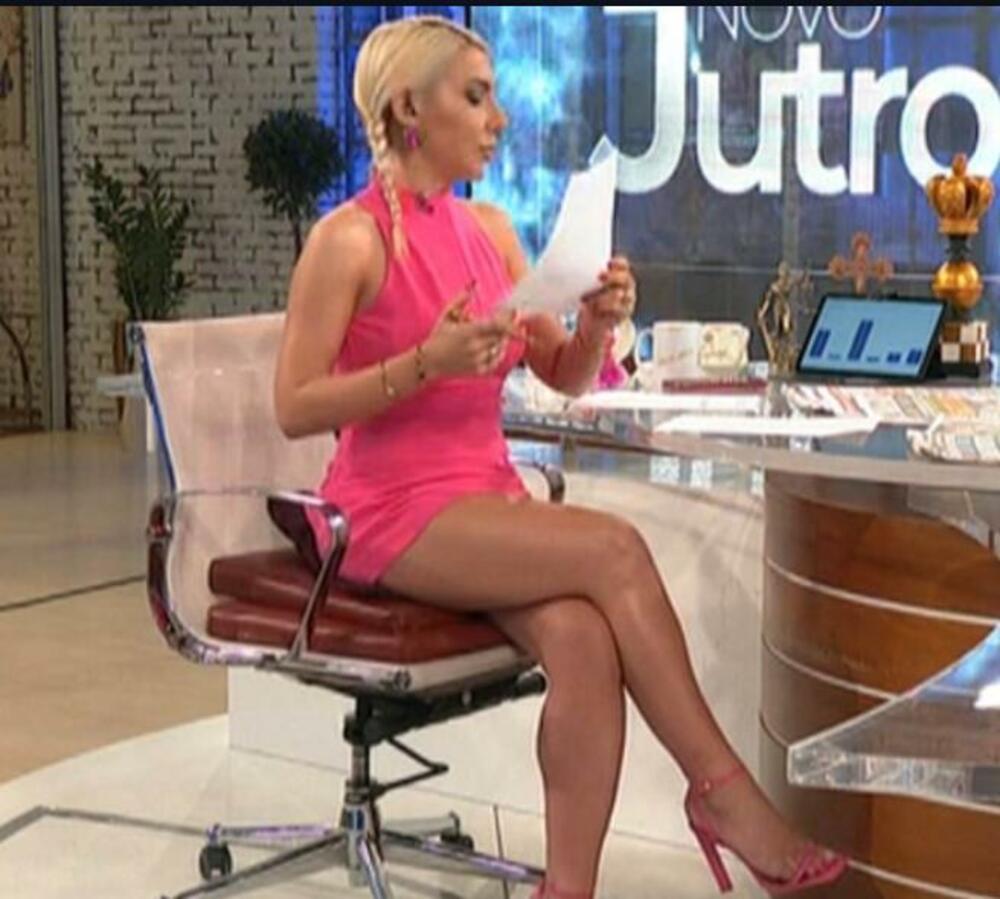 Dok se nameštala na jastučiće, Jovanina haljina se toliko podigla da gledaoci nisu imali druge nego da gledaju u njene gole butine.