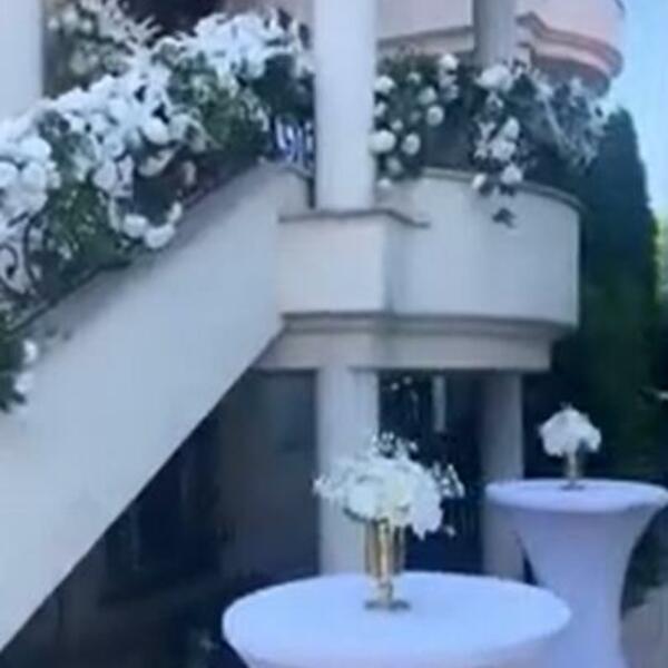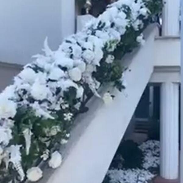 Na snimku možemo videti bajkoviti prizor. Stolovi su prekriveni belim stolnjacima, koji su dekorisani belim vazama sa belim ružama. Stepenice su takođe ukrašene belim ružama koje se prostiru celom njihovom dužinom.