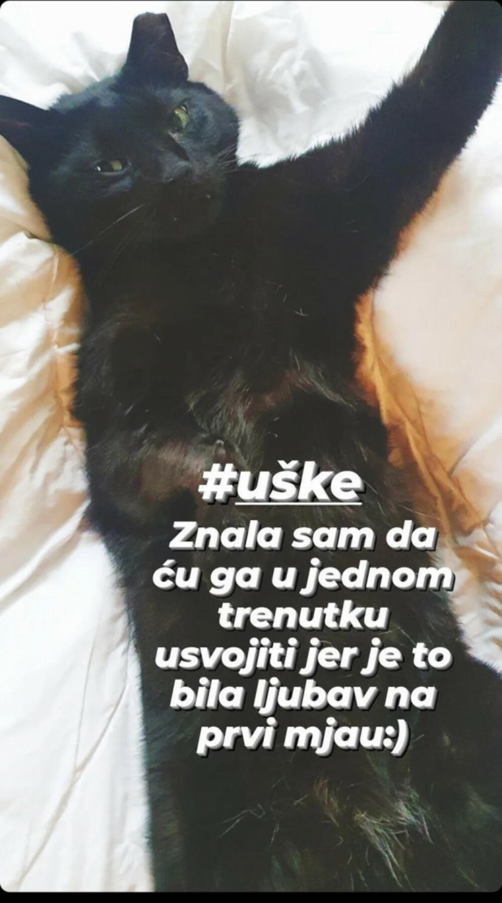 Kao što se već da pretpostaviti reč je o mačku, kojeg je pevačica i autorka nekih od najlepših domaćih pesama pronašla u parku, redovno ga hranila, a kada je jednoga dana Uške pošao za njom kući, u dogovoru sa Romanom pružila mu je krov nad glavom.