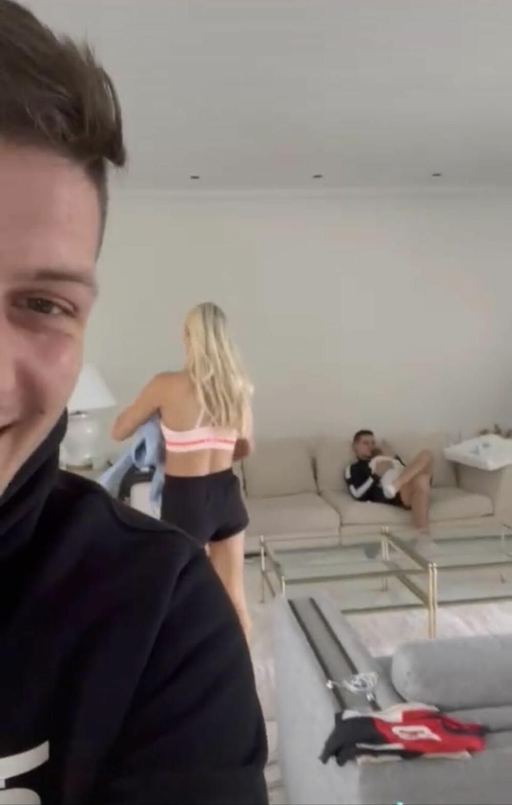 Fudbaler je krišom snimao manekenku koja je sedela na kravetu i gledala u telefon. Nakon toga joj je prišao i iznenada je poprskao vodom iz plastičnog pištolja.