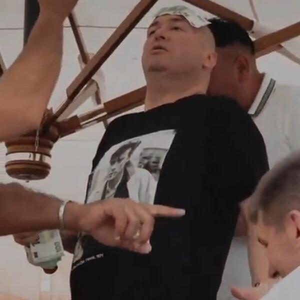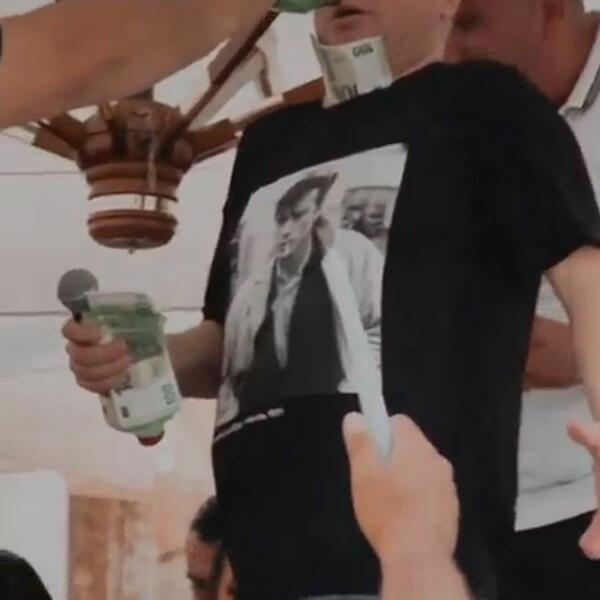 Novčanice su mu bile zalepljene po telu, dok se čini da Đani nije tačno znao šta se dešava oko njega.