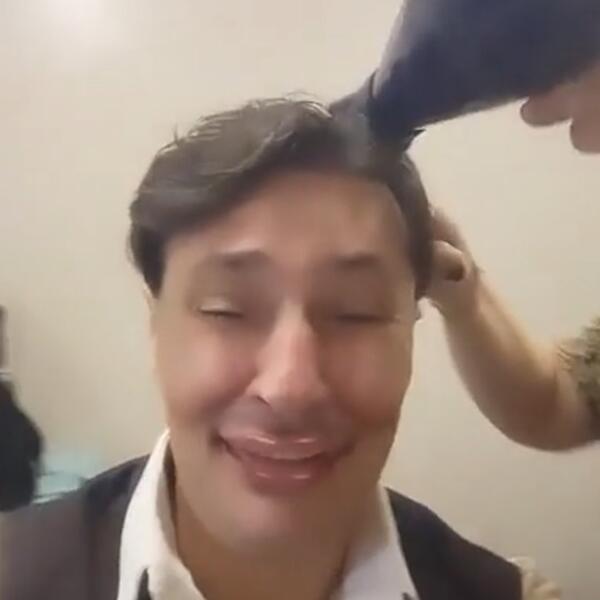 Glumac se snimao dok ga je u jutarnjim časovima fenirala frizerka, očigledno za potrebe neke uloge, a Milošević je iskoristio priliku da spoji lepo i korisno, pa se našalio na svoj račun.