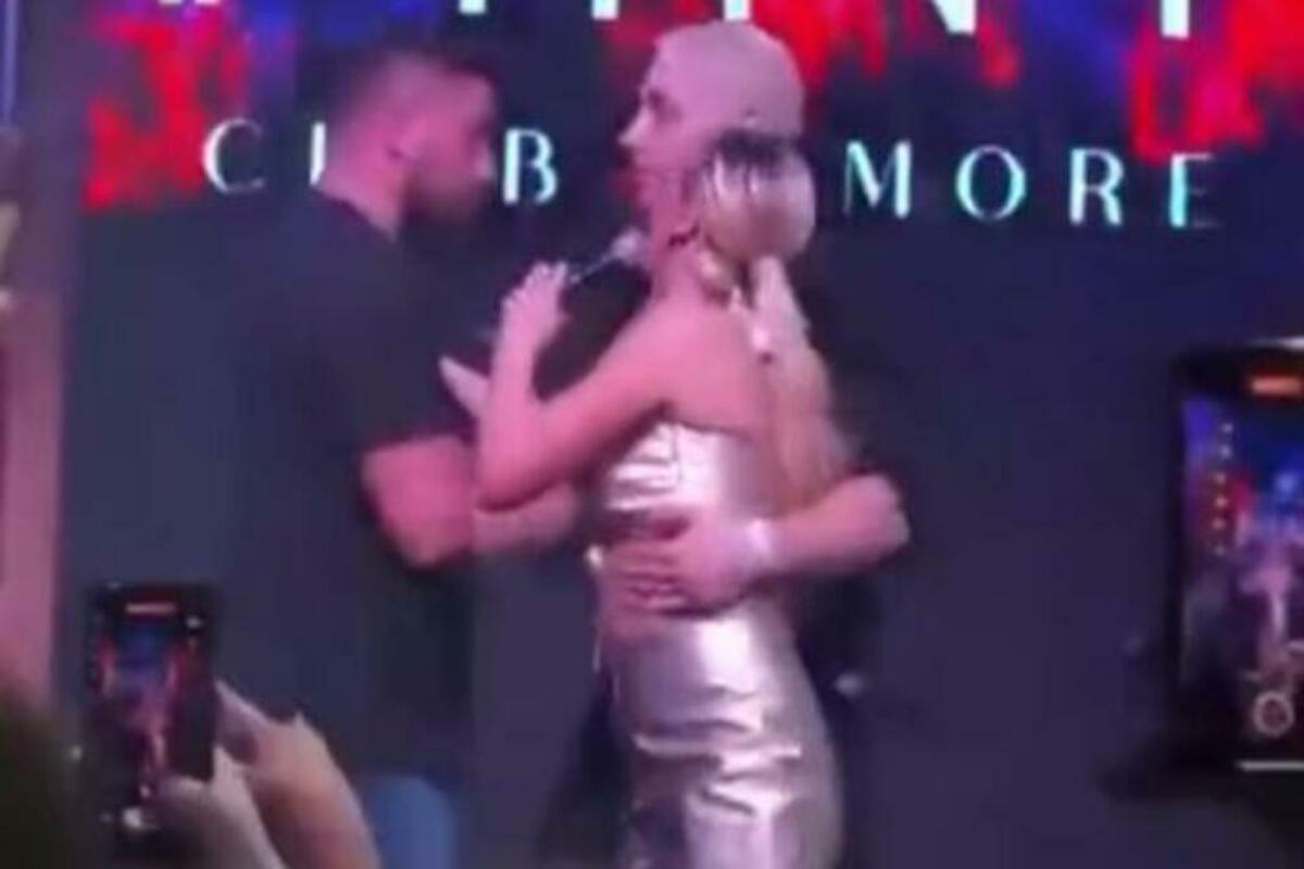 Dok je pevala upravo numeru "Provereno", njoj se na bini pridružio momak u raskopčanoj košulji koji je pevačicu obgrlio otpozadi i zaigrao s njom.