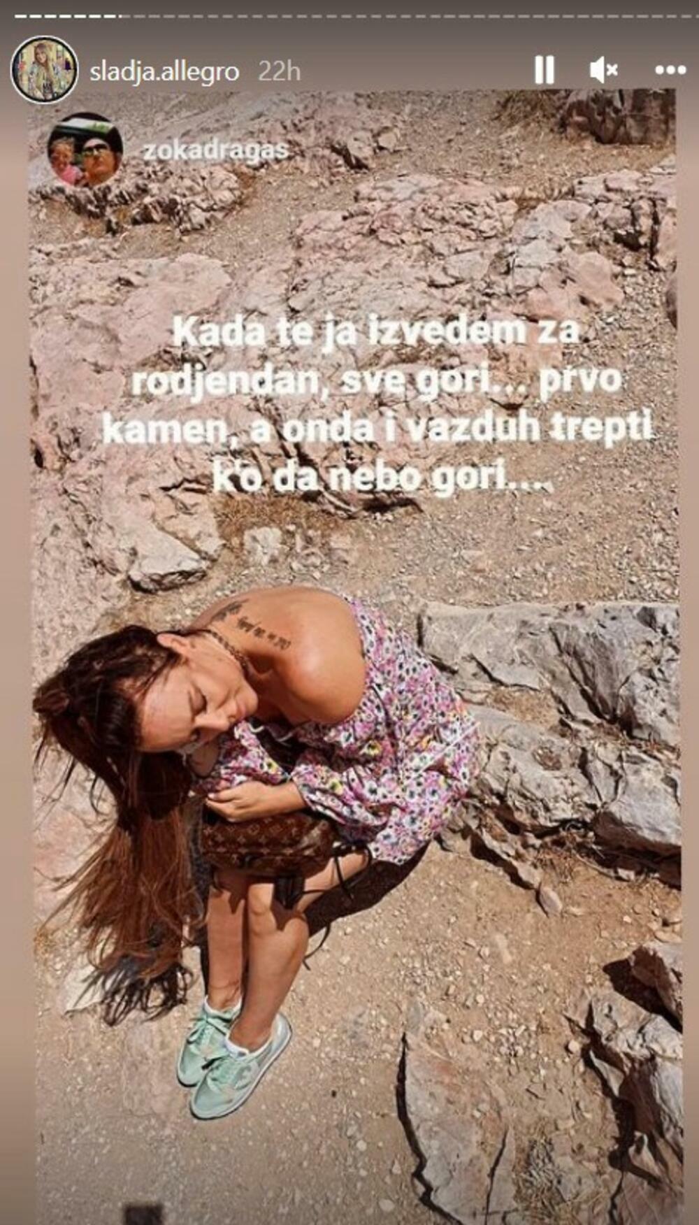 - Kada te ja izvedem za rođendan, sve gori. Prvo kamen, a onda i vazduh trepti, k'o da nebo gori - istakao je njen muž uz sliku njegove drage.