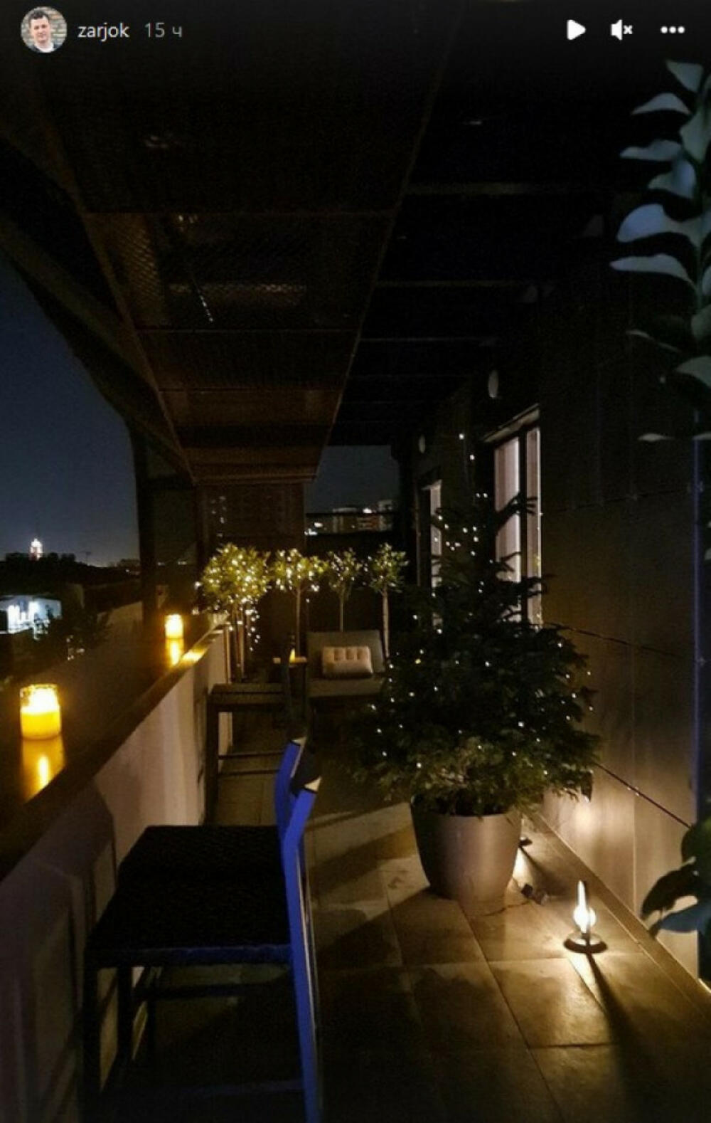 Prostrana terasa, po svemu sudeći, ima i stolice i udobne ležaljke. Svaki ćošak je u biljkama, a šarene lampice svakako su zanimljiv detalj. Kako se nalazi na poslednjem spratu zgrade, piše „Blic", pogled „puca" na sve strane.