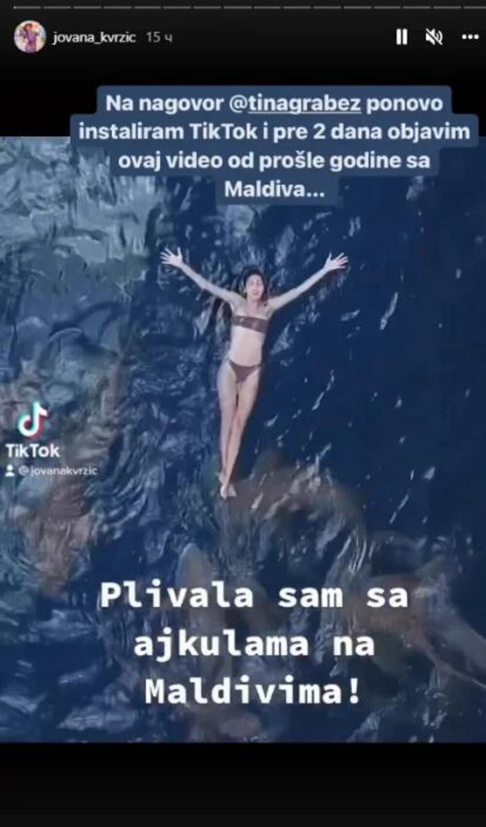 - Nisam aktivna na TikToku, fotografije i videe uglavnom postavljam na Instagram. Međutim, drugarica mi je rekla da su svi na Tik Toku i da moram da se aktiviram. Tako sam postavila par videa. Jedan od njih je sa prošlogodišnjeg putovanja u Egipat, a drugi video plivanja sa ajkulama na Maldivima. Jako retko pratim vesti, nemam ni TV, nisam ispratila šta se desilo u Hurgadi. Nisam čak sigurna da li je napad bio pre ili posle mog videa. Vest sam videla dva sata nakon što sam objavila video. Pritom mi je video pre tog iz Egipta. Ja sam sve to išla prošle godine - priča Jovana za medije.