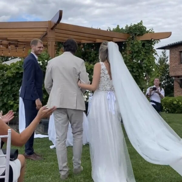 Sestra Petra Benčine u raskošnoj venčanici u pratnji svoga oca a uz pesmu Džona Ledženda "All of me" došetala je do matičara gde ju je izabranik čekao, a nakon što se odlučila hoće li zadržati svoje ili dodati njegovo prezime istim koracima, ovoga puta sa suprugom pod ruku ona je odšetala do dela gde je slavlje nastavljeno uz bend.