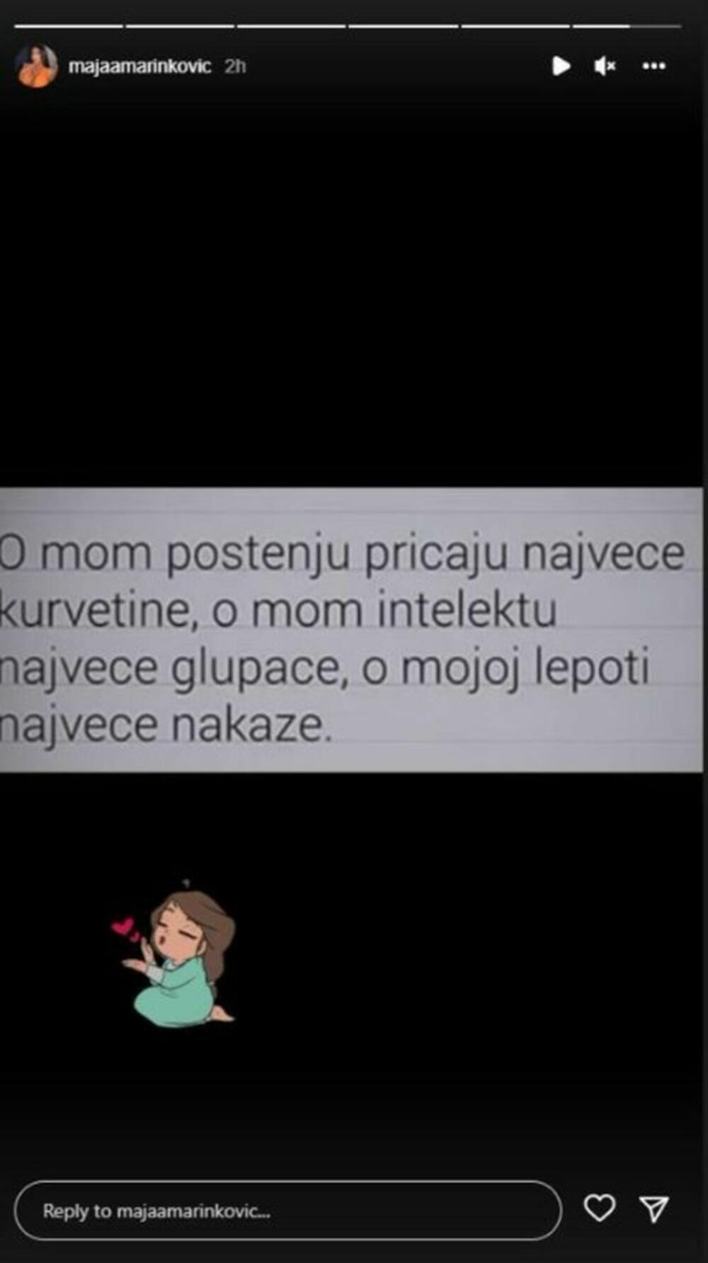 - O mom poštenju pričaju najveće k********, o mom intelektu najveće glupače, o mojoj lepoti najveće nakaze - stoji u citatu koji je Maja podelila.