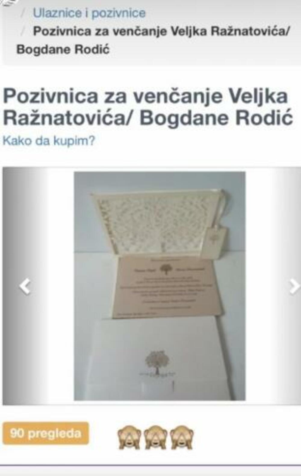 Na jednom od sajtova koji se bave prodajom stvari, osvanula je pozivnica za Bogdaninu i Veljkovu svadbu.