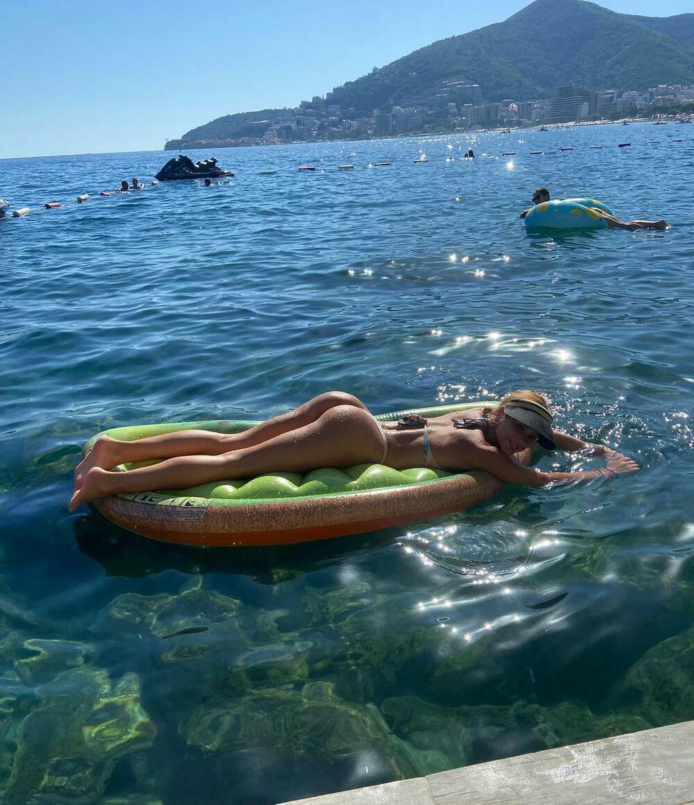 Ona je sada otišla na letovanje i objavila niz fotografija na kojima pozira na dušeku u moru, a u prvi plan stavila je zategnutu zadnjicu u tanga bikiniju.