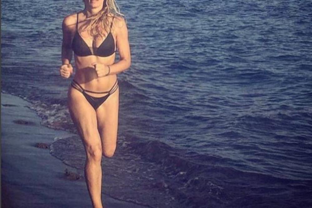 Ana je bila vidno raspoložena, pa nije skidala osmeh sa lica, dok su u prvom planu bile njene duge noge, preplanuli ten i trbušnjaci.