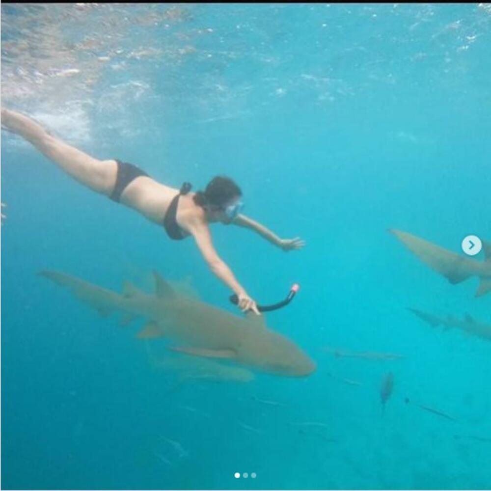 Međutim, kako bi svoje letovanje učinila posebnim, odlučila se za aktivnosnt koja je svojstvena samo najhrabijima, pa je tako zaplivala sa ajkulama, a ovu scenu zabeležila je kamerom.