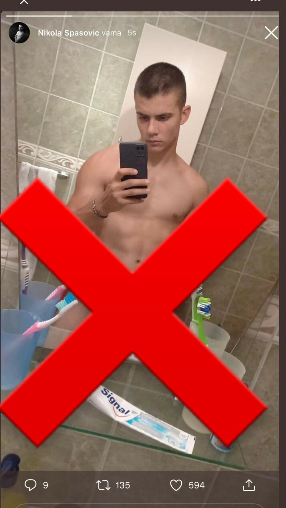Izgleda da Nikola nije mario za diskreciju, te je tako nesmotreno slao sebe bez trunke odeće.