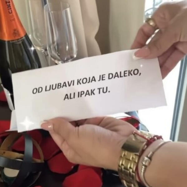 Ona se sada na Instagramu pohvalila iznenađenjem koje ju je dočekalo u hotelskoj sobi. Naime, njen partner joj je poslao šampanjac, dok su okolo bile latice ruža i emotivna poruka.