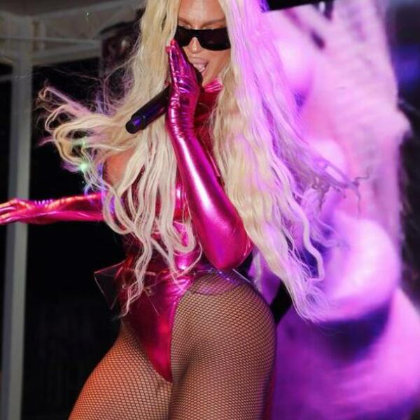 Ona je nosila roze komplet, duboke čizme u crnoj boji i mrežaste čarape, dok je na licu imala naočare izgledajući kao najpoznatija igračka za devojčice, Barbi lutka.