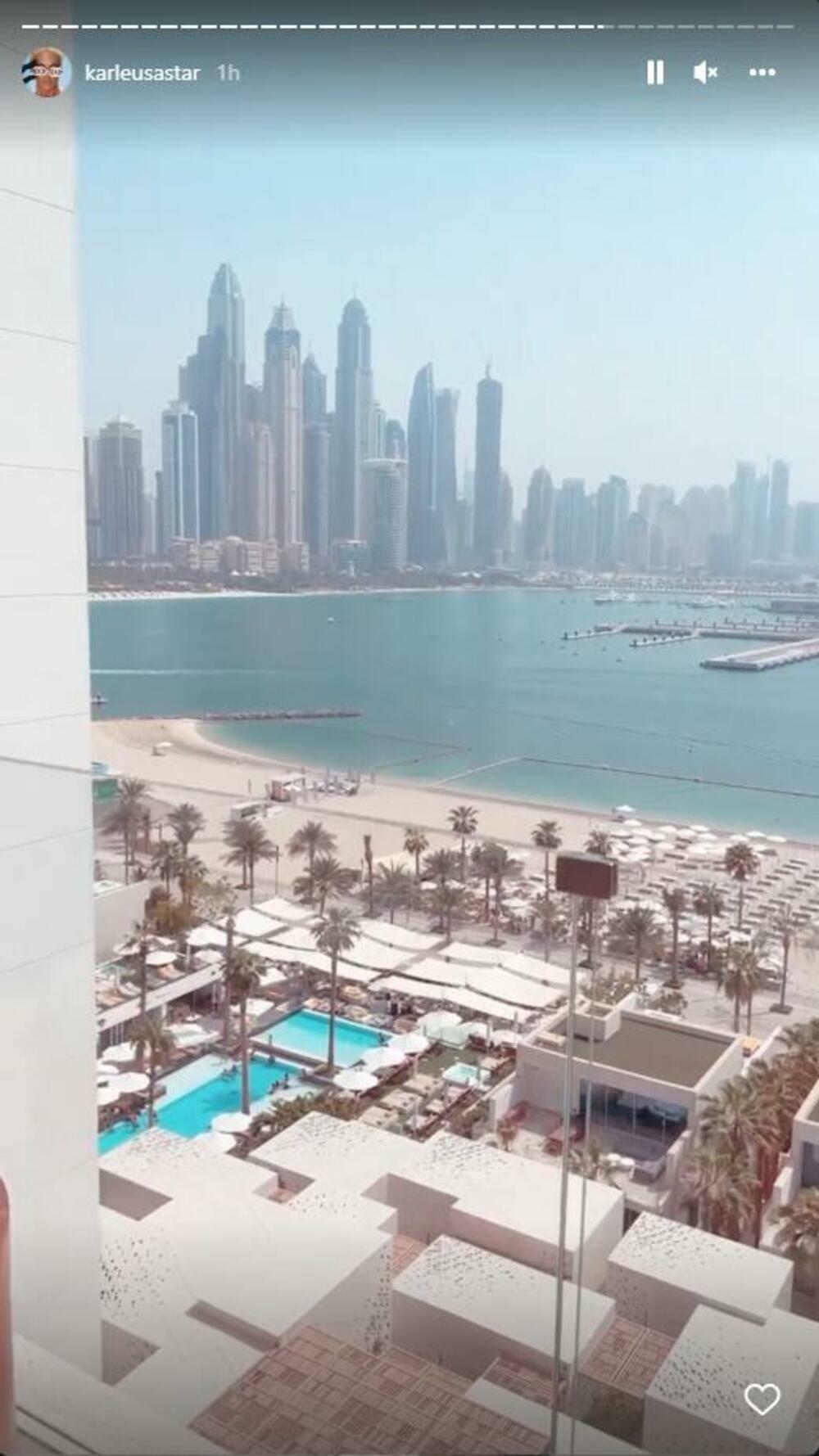 Karleuša je snimila i kako su ćerke i ona dočekane u luskuznom kompleksu gde će biti smeštene dok borave tamo, potom je pokazala tortu u obliku slova "J", šampanjac, a onda i pogled od milion dolara.