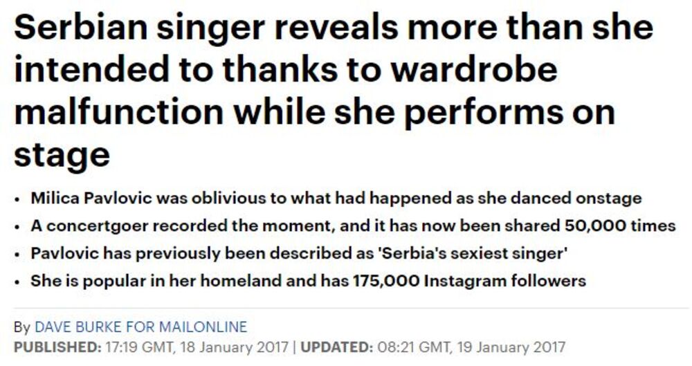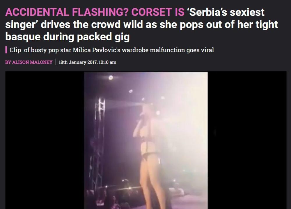 Britanski "Dejli Mejl" i "San" posvetili su tekstove Milici i nezgodi koja joj se desila kada je pred publiku izašla u uskom zlatnom korsetu.