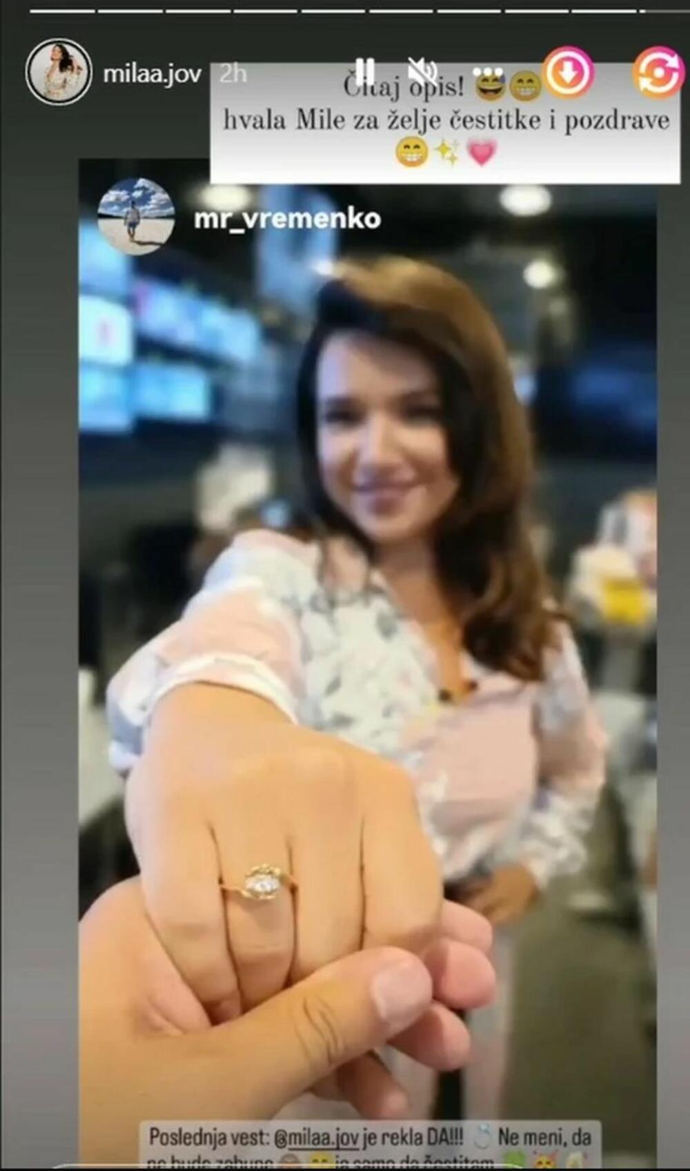 Voditeljka vremenske prognoze rekla je "da". Ona je objavila fotografiju sa prstenom i time dala do znanja da se udaje za dugogodišnjeg partnera Aleksu.