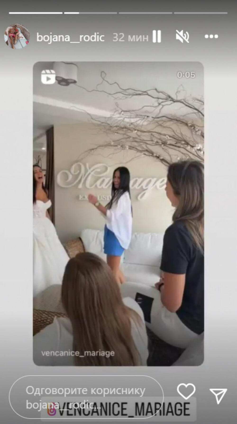 Kao i svaka buduća mlada, Bojana se najviše bavi time kako će izgledati na svoj najvažniji dan u životu, pa se sa svojim sestrama i prijateljicama uputila da odaberu savršenu venčanicu, a to je podelila sa svojim pratiocima na „Instagramu“.
