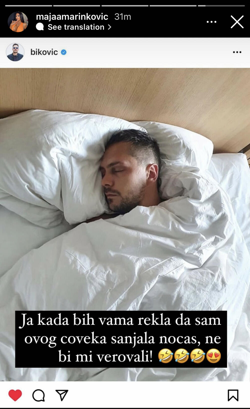 Naime, ona je podelila fotografiju Miloša Bikovića iz kreveta i napisala da ga je sanjala.