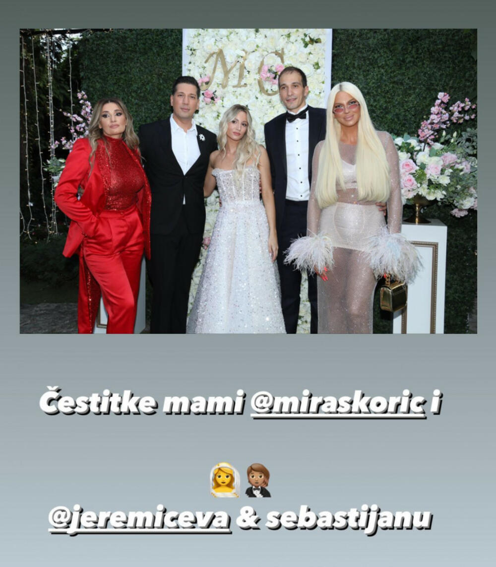 Milica Jeremić, ćerka Mire Škorić, udala se juče u Beogradu za svog dugogodišnjeg izabranika. Svadbenom veselju, koje je upriličeno u jednom elitnom restoranu, prisustvovao je veliki broj poznatih ličnosti, mahom pripadnika estrade i političke scene.