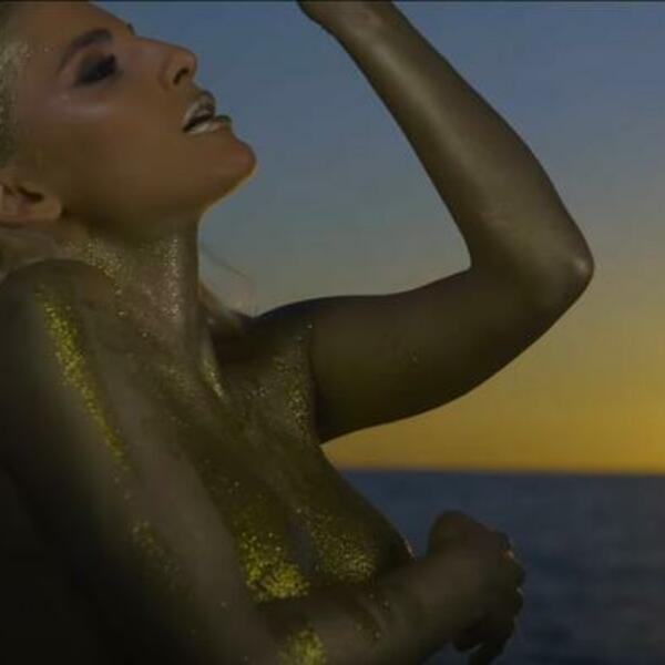 Kao deo kompleta, gore je nosila kratak plavi top sa dubokim izrezom koji je njene atribute istakao u prvi plan, posebno jer se na objavi može videti da ne nosi brushalter, te je dekolte bio i više nego primetan.