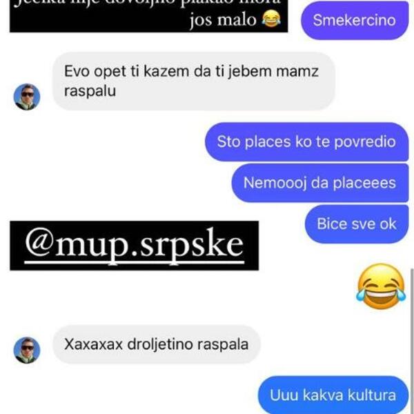 - J**** li ti mamu ja raspalu - napisao je Vranješ.