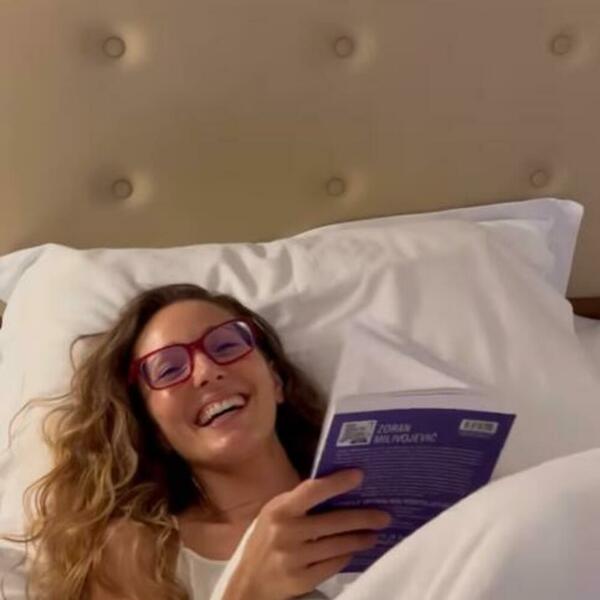 U snimku je, između ostalog, pokazala kako izgleda u krevetu, a prvo joj je društvo pravila knjiga, da bi je potom odložila i sa osmehom na licu otišla na spavanje.