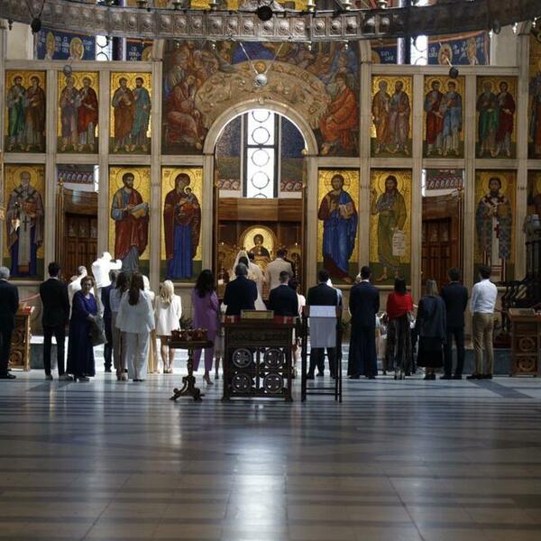 Venčanju prisustvuju samo najbliži članovi porodice, prijatelji i kumovi. Među prvima su ispred crkve stigli Novak Đoković i njegova supruga Jelena sa decom.