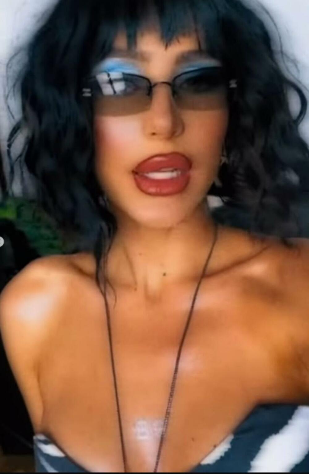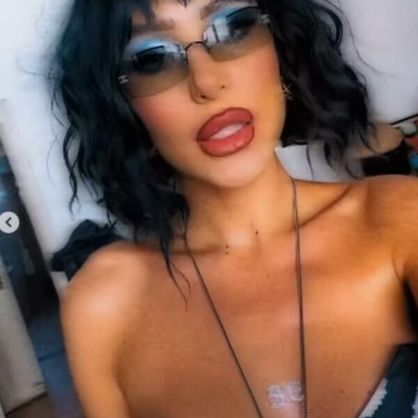 Ona je takođe obukla crno-belu majicu koja je istakla njene atribute, a sve to ukompletirala je naočarima koje odaju vajb 90-ih.