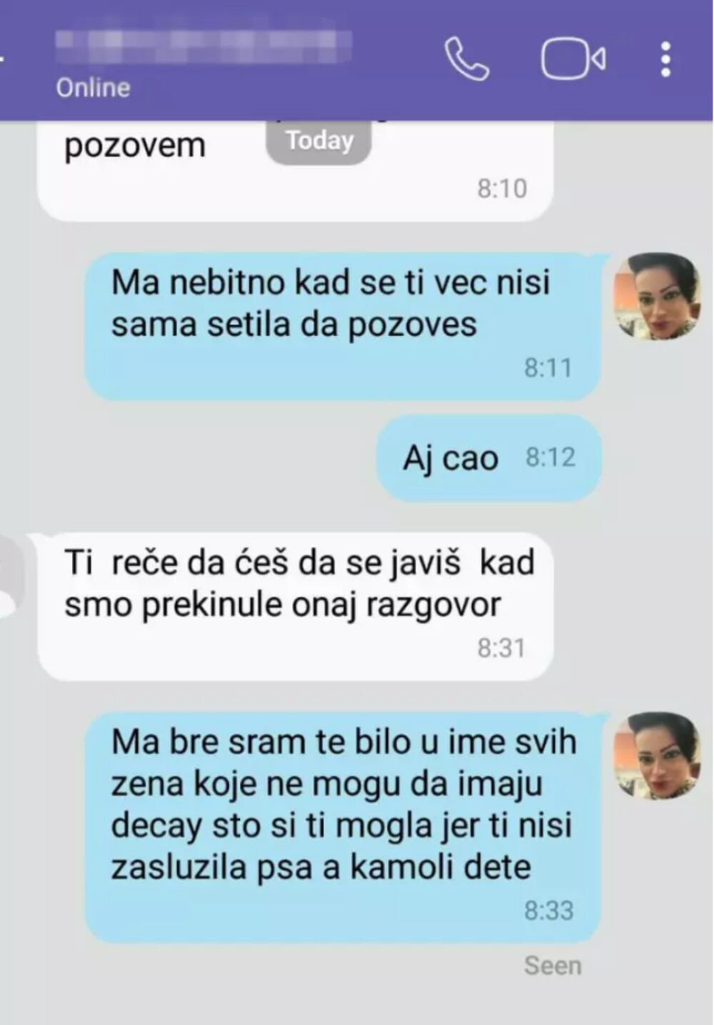 - Sram te bilo u ime svih žena koje ne mogu da imaju decu, zbog toga što si ti mogla, jer ti nisi zaslužila psa, a kamoli dete! - besnela je Dunja, a nakon poslednje poruke, majka joj nije odgovorila.