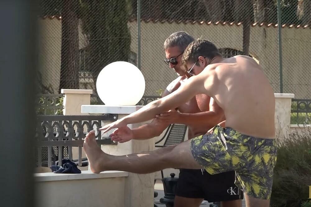 Naime, on je stasao u pravog momka, a sada su ga kamere Paparaco lova uhvatile kako sa ocem radi vežbe na plaži i ispred hotela.