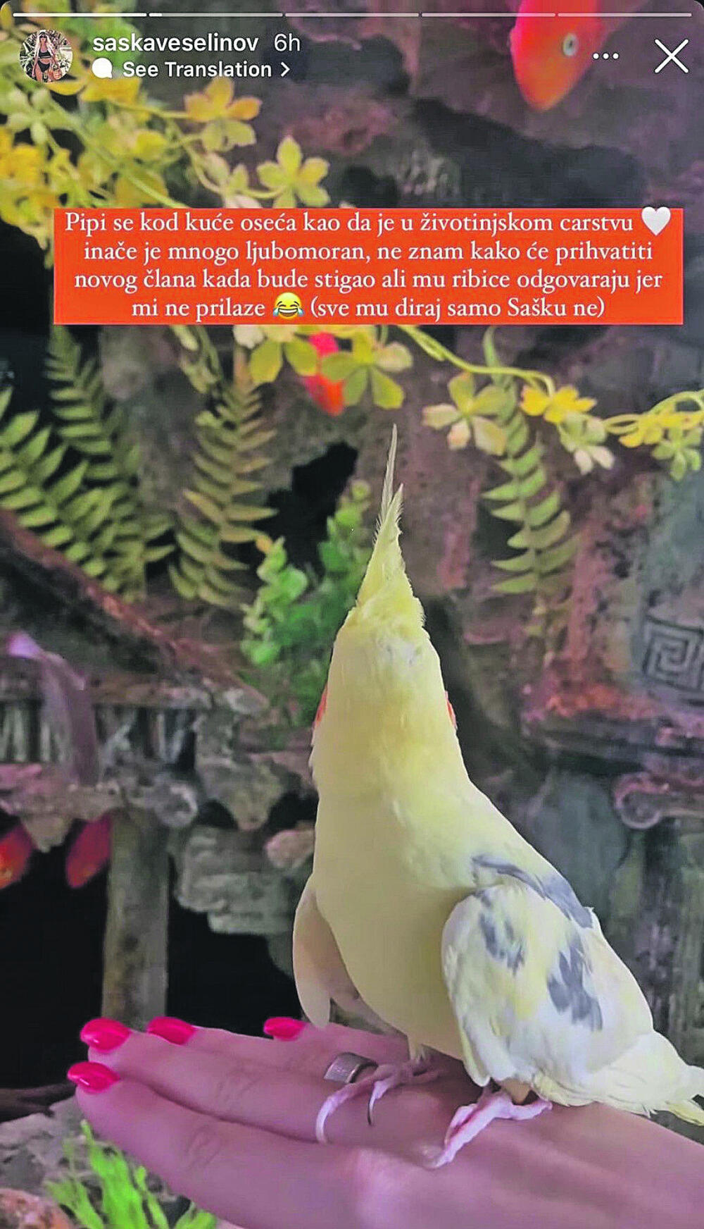 Jedna od najzanimljivih i najkomentarisanijih vesti bila je i ona da je Saška na svoje venčanje povela i svog kućnog ljubimca-papagaja.