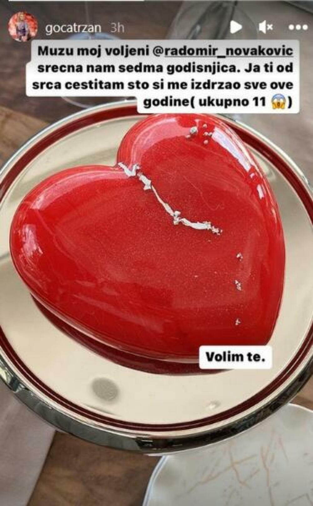 Naime, danas se navršilo sedam godina otkad su se jedno drugom zavetovali na večnu ljubav i vernost, a ovaj važan datum su obeležili uz tortu u obliku srca.