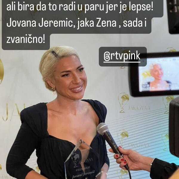 Voditeljka "Pinka" Jovana Jeremić je na jednoj dodeli nagrada dobila priznanje "jaka žena", koje njoj mnogo znači.