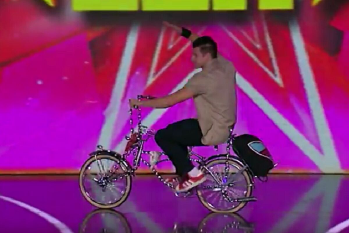 On je neobičnim biciklom ušao u studio i odmah zainteresovao one koji su tu da odluče o njegovoj daljoj sudbini u šouu.